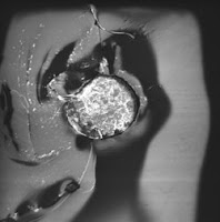 Glass expert performs a failure analysis on a failed tempered glass door. The spontaneous glass failure was analyzed to determine the cause of failure. This was one of several doors that failed spontaneously on a new high rise. Fortunately, the door did not fall apart; thus, the failure origin could be preserved. The upper left photo shows the failure origin (arrow). The origin was taken apart, and at the center was a spherical 180 micron diameter nickel sulfide particle, NiS particle. During the glass failure analysis, a scanning electron microscope, SEM, image of the particle is shown in the upper right. Elemental analysis of the particle showed it to consist of nickel and sulfur. The SEM image also shows initial Wallner lines that are spiral in shape and are leaving the particle. This identifies the NiS particle as the cause of the failure