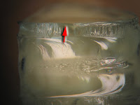 Tempered glass is safer than standard (i.e. annealed) glass because “dices” into small pieces under certain failure modes. In reality, the overall glass failure is driven by residual stresses put into the glass by the tempering process. That is, tempered glass “destroys” itself. If the glass is impacted “side ways” the failed piece will break into safe small “diced” pieces. And this provides safety to one impacting the glass. However, there is the possibility that the glass can fail without a sideways impact. In this case, there is a possibility the glass sheet can fall intact. In addition, the edges of failed tempered glass are just as sharp as those created when annealed glass fails. The upper left photograph is of a piece of failed tempered glass that stayed “inter locked” after failure. The failure analysis photo on the upper right is an twenty times magnification photomicrograph of the one small piece of the failed tempered glass (arrow). The edges on this piece are not rounded. They have the same sharp edges associated with any failed piece of glass.